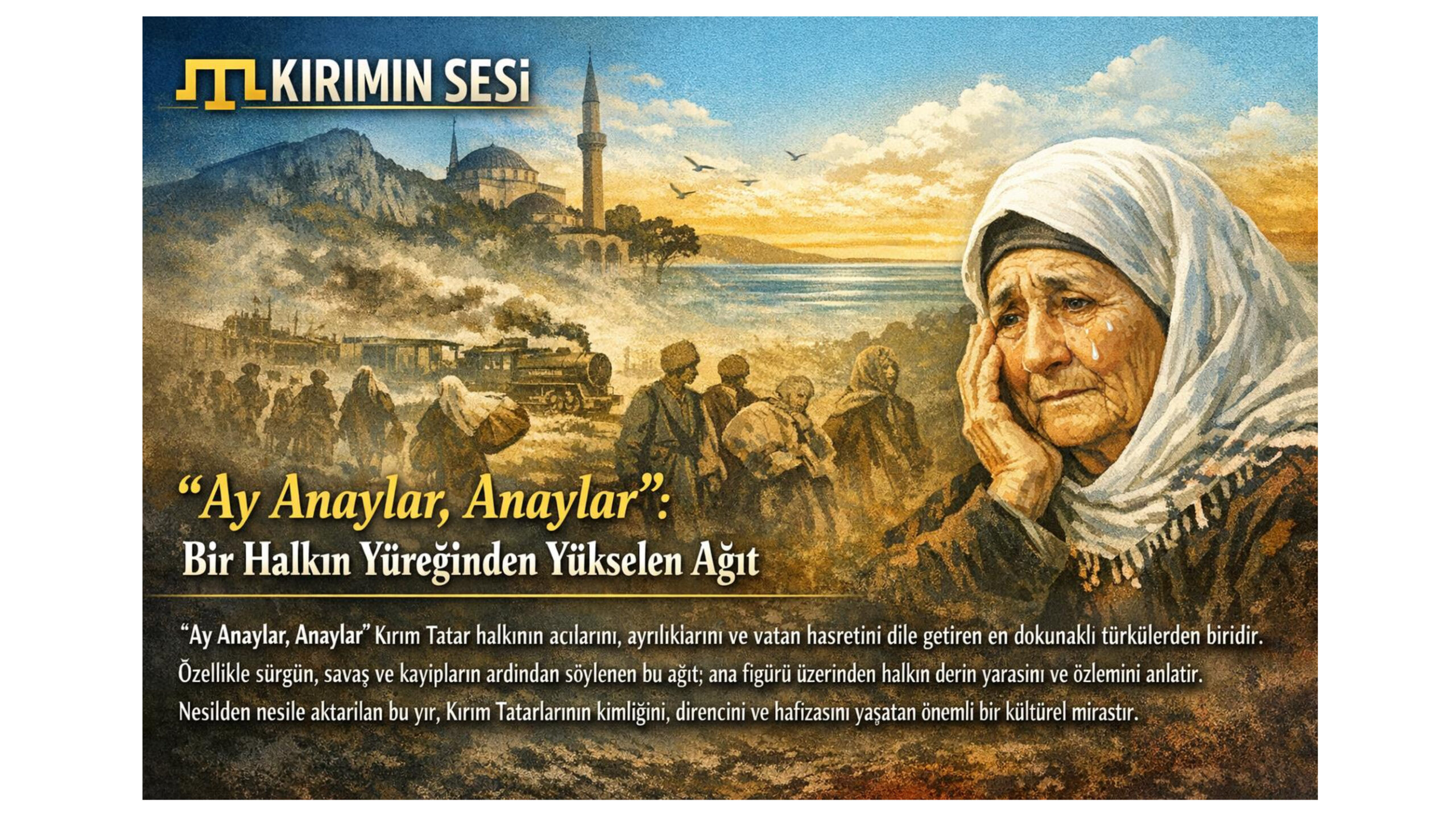 “Ay Anaylar Anaylar”, Kırım Tatar halkının yaşadığı sürgün, hasret ve askere gidiş gibi acı hatıraların melodiye dökülmüş halidir.