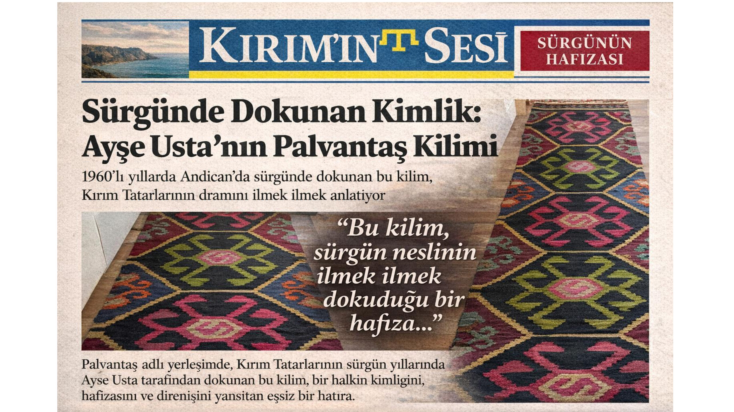 Sürgün edilen Kırım Tatarları için halı ve kilimler, yalnızca bir ev eşyası değil; aynı zamanda kimliğin, hafızanın ve direnişin sembolü olmuştur. Ayşe Usta’nın bu eseri de, vatanından koparılan bir halkın yaşadığı acıyı, umudu ve sabrı renklerle ve motiflerle anlatıyor.