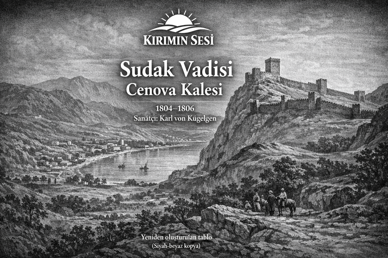 Kırım’daki Sudak Vadisi ve meşhur Cenova Kalesi’nin, Karl von Kügelgen tarafından 1804–1806 yıllarında yapılan eserine dayanan yeniden oluşturulmuş bir tabloyu temsil eder. Orijinal çalışmanın siyah-beyaz kopyasından yola çıkılarak renklendirilmiş ve detaylandırılmış bir versiyondur.