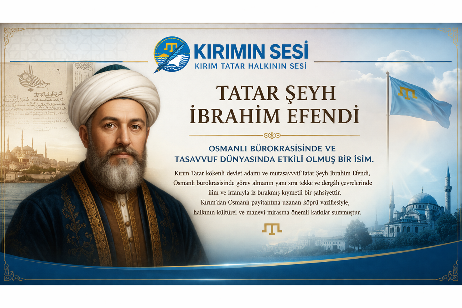 Bugün Tatar Şeyh İbrahim Efendi, Kırım Tatar tarihinin derinliklerinde kalmış olsa da, temsil ettiği değerler ve bıraktığı izler bakımından hatırlanması gereken önemli şahsiyetler arasında yer almaktadır. “Kırımın Sesi” için bu tür isimlerin gün yüzüne çıkarılması, milli hafızanın diri tutulması açısından büyük önem taşımaktadır